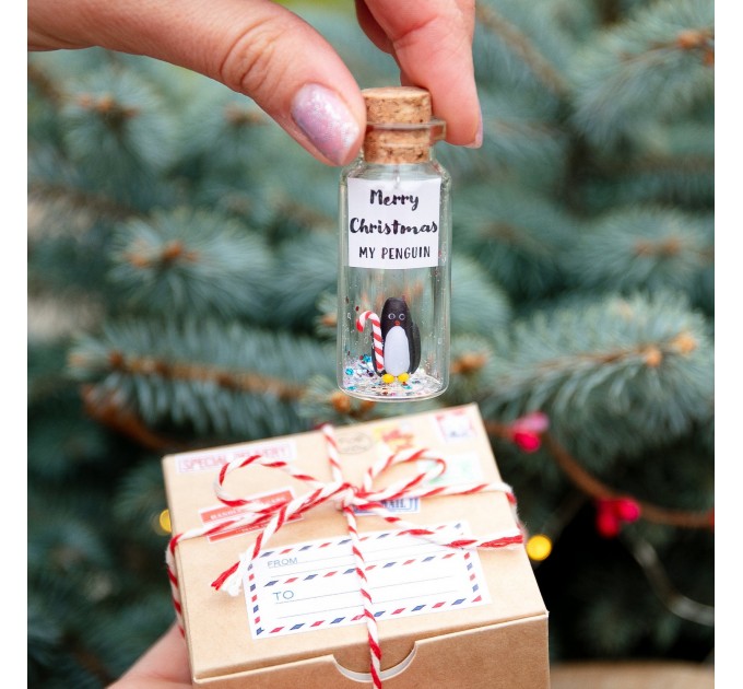 Cute penguin Christmas gift that should bring a smile to everyone, especially penguin lovers. He or she will always have this custom penguin gift at their side, on the dashboard of his/her car, on the nightstand, on the office desk or even in pocket. Also you can hang it as Christmas ornament. Create your own unique and personalized message that will be treasured forever. It is a wonderful reminder for each day! In my shop you can find more penguin bottles.