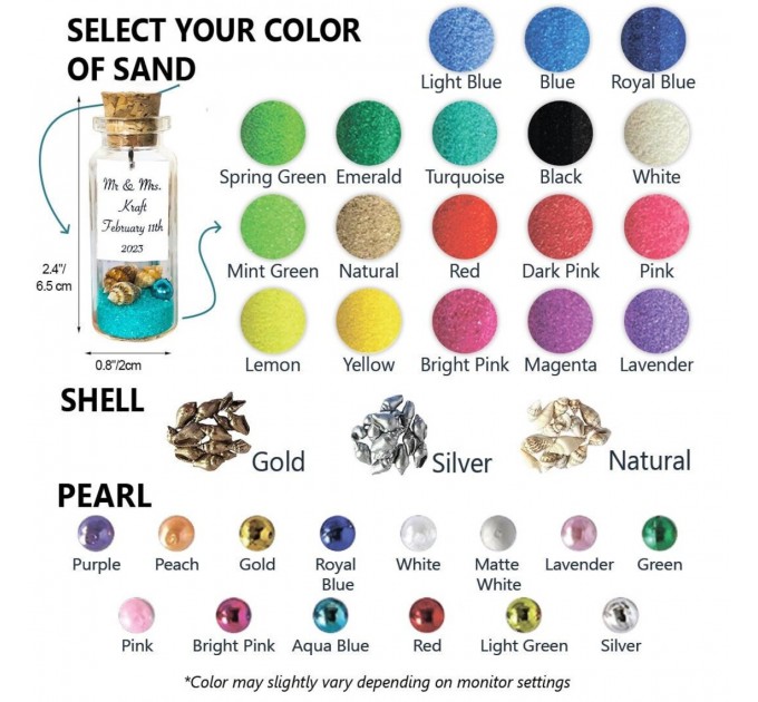 If you are looking for some beautiful wedding ideas, here is the mini mason jar with sand, shells, pearls, and your personalized message inside!